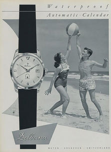 Pairs for ladies and gents as well as exclusively ladies’ designs represented an important category of innovation. Performance and durability were increasingly valued for active lifestyles and lead Delbana to introduce models that were “waterproof” for sports and leisure. Additional components such as date windows also appeared more frequently as travel and recreation soared in popularity and accessibility.
